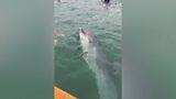 People urged to avoid area where "boisterous" dolphin was seen jumping on two swimmers