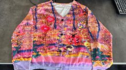“It was actually a picture of knitting printed on a polyester fabric... and it wasn't even a very good printed picture,” she states.