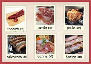 Meats, fruit, vegetables and seafood in Spanish
