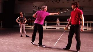 Romeo and Juliet sword-fighting rehearsal