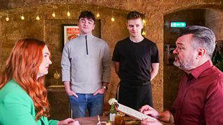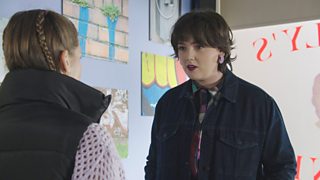 A disappointed Dean acts out when he is told that he won’t be joining Rhona in Spain.