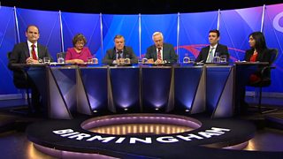 David Dimbleby chairs debate from Birmingham. Panel includes Ken Clarke and Andy Burnham.