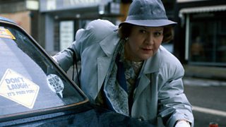 1/10 Whilst Hyacinth lectures the milkman, she spies a man in Liz's house.