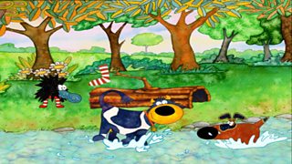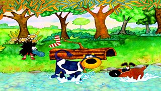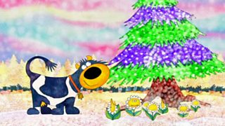 Gaelic children's cartoon. Connie the Cow wanders through the forest looking for water.