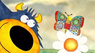 Gaelic children's cartoon about Connie the cow and a curious butterfly.