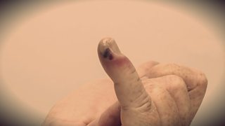 Willie in Belfast has a bealin' finger. Vera is in England trying to eat her breakfast.