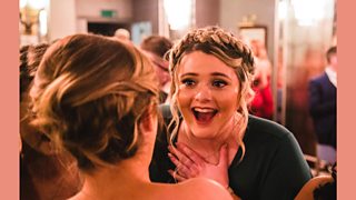 Emma gu bhith a' bruidhinn ri Fraser agus Amelia bhon chòmhlan Midnight Ambulance.