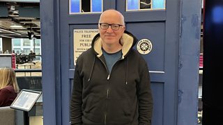 Jamie Medhurst sy'n nodi 90 mlynedd ers agor canolfan darlledu ÃÛÑ¿´«Ã½ Bangor.