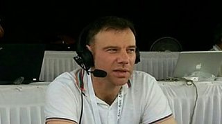 Cricket commentator Charles Dagnall reduces Dirk Nannes to fits of giggles.