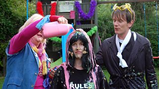 4/13 Football-mad Gary Wilson is the dad in disguise as Mega Nanny for his kids Kate and Laura.