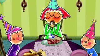 25/26 Pincidh's prehistoric grandma turns her hair pink to scare off a saber-tooth guinea pig.