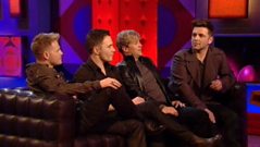 The Brit award winners chat about weird gifts from fans, Simon Cowell’s black toilet paper and socialising with each other. Jonathan also gets the guys to test his computer game prototype, Stool Hero.