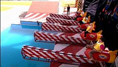 There's nothing funny about a heavyweight boxer punching one of the contestants right off the side of the Tower, or asking the contestants to sit astride enormous rockets with the words 'Kaboom' written down the side. Or is there?