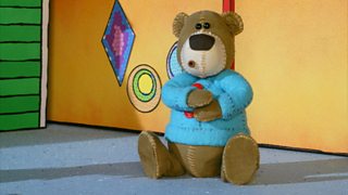 18/26 Anna 's an sgioba a' toirt taic do Rob am mathan beag. Anna helps Rob the bear.