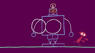 2/52 The Line draws a robot, which scares Dipdap and makes him run away.