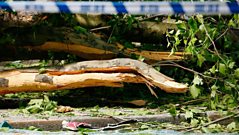 Caller describes near miss as tree falls in the bad weather