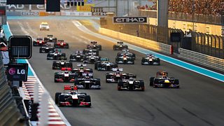 Jake Humphrey presents coverage of the Abu Dhabi Grand Prix at the Yas Marina Circuit.