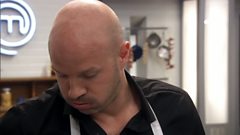 But there's no time for complacency, as the contestants face their second challenge of the day, a daunting skills test in which they are tasked with making crepes suzette in only 10 minutes. With the pressure on the celebrities, they deliver less-than-orthodox techniques, much to the amusement of the judges.