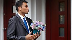 Fat Boy practices chat up lines in the mirror and dithers on the B&B doorstep. Spotting him, Denise hurriedly changes and reapplies her make up. Flustered, Fat Boy thinks she鈥檚 amazing and awkwardly offers her table flowers. Denise invites him in to 鈥榟elp鈥 find a place for them, tells him to shut the curtains and kisses him.