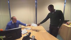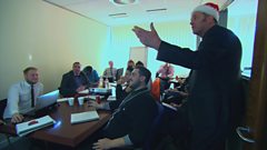 Nev interrupts a meeting—Happy People Celebrate Christmas