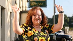 Sh芒n sy'n sgwrsio gyda Adam yn yr Ardd.