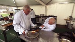 The show kicks off with a trip back in time, catering for Shakespeare's 450th birthday. One hundred members of the Shakespeare Society have gathered at Mary Arden's Farm, birthplace of William Shakespeare, to celebrate the anniversary. In a battle between the girls and the boys, they must work in specially-constructed kitchens in marquees, on equipment they have never worked on before, so conditions are tough! The teams must design and create four mouth-watering dishes each (a meat dish, fish, vegetarian and dessert) from a selection of ingredients that would have been available at the time, including mutton, rabbit, pigeon and rainbow trout as well as a selection of fruit and vegetables and herbs and spices.