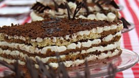 For the technical challenge, Mary sets the bakers her tiramisu cake. It's a new kind of tiramisu requiring the bakers to temper chocolate, bake beautifully thin coffee-soaked sponges and create perfect layers of sponge, cream and chocolate... but only if they read the recipe properly.
