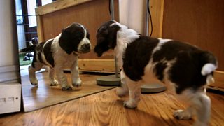 7/10 The tiny pups are encouraged to go outside for the first time.