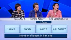 A team of musicians take on three publishers in this edition, competing to draw together the connections between things which, at first glance, seem utterly random. So join Victoria Coren Mitchell if you want to know what connects the flag of Vietnam, Google Os, the MCC tie and Rupert Bear's clothes.