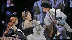 Anne meanwhile admits to herself that the ashes of her first love are still burning, and that she is now unhappy in her vain splendor. In Donizetti's story of the doomed queen, Sondra Radvanovsky takes the title role as Anne Boleyn, Ildar Abdrazakov is King Henry VIII, Milijana Nikolic is Jane Seymour, the king's consort, and Stephen Costello plays the queen's love interest in Sir David McVicar's gripping period production. Marco Armiliato conducts.