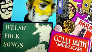 Mari Elin Jones sy'n ymuno â Mr Mwyn i drafod arddangosfa RECORD: Gwerin, Protest a Phop.