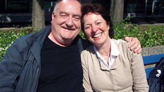 Helen Mark and historian David Hume prepare for the TV coverage of the 12 July parade.