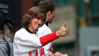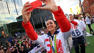 Gabby Logan presents highlights from today's athletes' parade in Manchester.