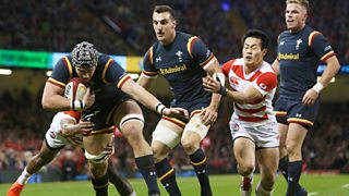Gabby Logan presents live coverage of Wales v Japan at Cardiff's Principality Stadium.
