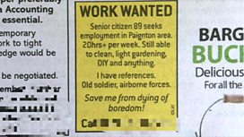 89 year old Joe Bartley found retirement so dull he put a job advert in his local paper.