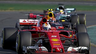 Ferrari's Sebastian Vettel takes victory in Melbourne ahead of Mercedes' Lewis Hamilton.