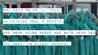 Dau dîm o feirdd yn cystadlu i gyrraedd y rownd derfynol yn Eisteddfod Genedlaethol 2017. Two teams of bards compete to win a place in the 2017 National Eisteddfod final.