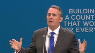 Coverage of the speech to the Conservative Party conference by Dr Liam Fox.