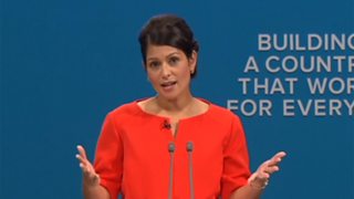 Coverage of the speech to the Conservative Party conference by Priti Patel.