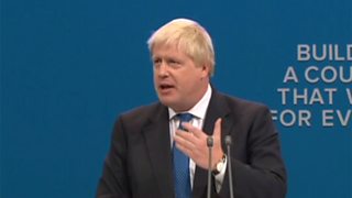 Recorded coverage of the speech to the Conservative Party conference by Boris Johnson.
