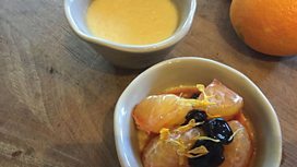 Vanilla Baked Yoghurt with Clementines and Dried Cherries