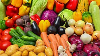 Heddyr Gregory a'i gwesteion yn sgwrsio am lysiau.