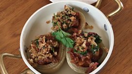 BBQ Beef stuffed onions, crispy bacon crumbs with potato hash
