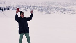 15/15 Michael is awed by the scale of the vast Athabasca Glacier.