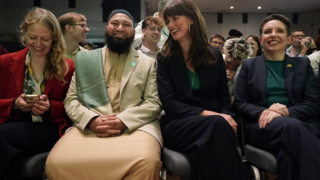 Greens Party deputy leaders Mothin Ali and Rachel Millward speak to the party's conference in Bournemouth.