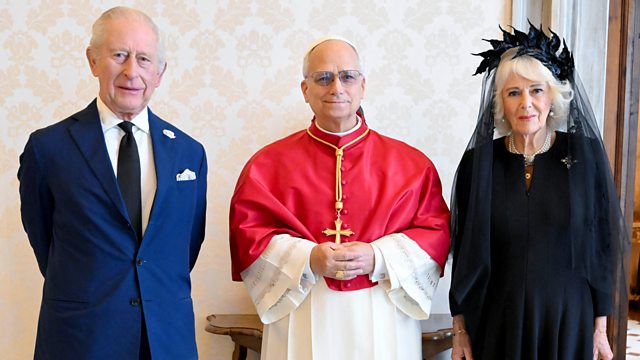 The King and Queen Camilla met Pope Leo for the first time before the service in the Sistine Chapel.