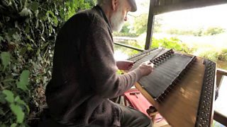 Dick plays the hammered dulcimer by the River Bush.