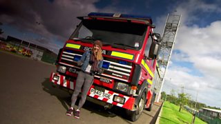 Kim Carnie and Lennox learn about firework safety.