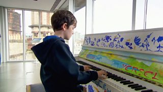 Kim Carnie and Donald learn all about the piano.