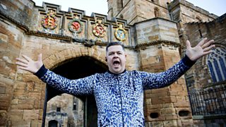 Comedian Grado hosts three teams of contestants driving across Falkirk.